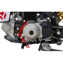 Za dynamikę i niezawodność START 88S PL odpowiada odblokowany sportowy moduł zapłonowy (CDI RACING) oraz gaźnik NIBBI PZ18 z filtrem gąbkowym YCF, oferujący świetne zestrojenie i wysoką kulturę pracy. Regulowana stopka boczna ułatwia parkowanie, a antypoślizgowe siedzenie zapewnia stabilną pozycję. Bezpieczeństwo zwiększa wyłącznik zapłonu typu kill button, który ogranicza przypadkowe wyłączenie silnika. Komfort i precyzję jazdy zwiększają odginana, regulowana dźwignia hamulca przedniego oraz nowe bloczki napinacza łańcucha, poprawiające niezawodność napędu. Całość dopełniają czerwone, stylowe dodatki, takie jak przewody paliwowe, fajka, wentyle, manetki czy bloczki, nadające temu modelowi sportowy i atrakcyjny wygląd.